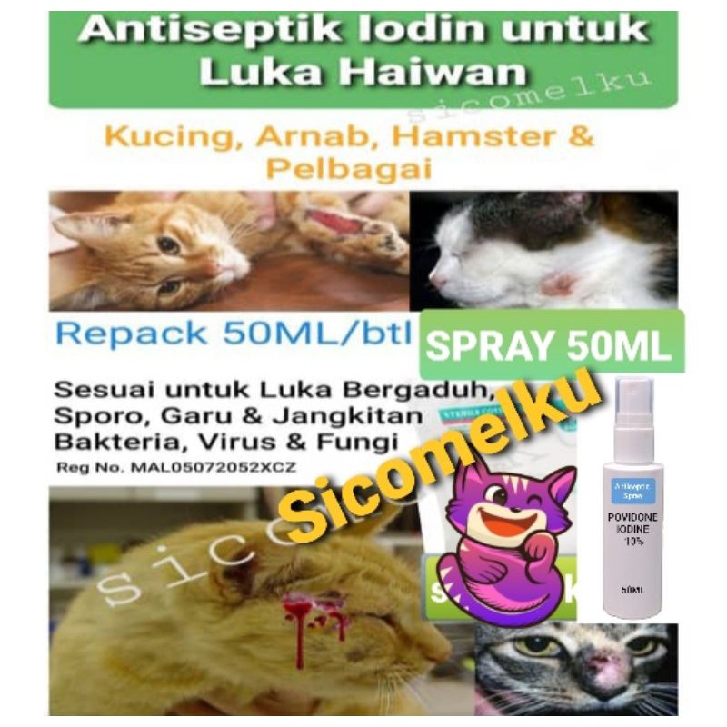 Ubat Antiseptik Iodin Cuci Luka Kucing Haiwan Antiseptic For Pet Cat Wound 50ml Botol Biasa Atau Spray Shopee Malaysia