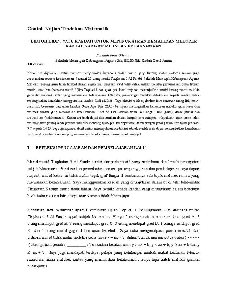 Contoh Kajian Tindakan Matematik