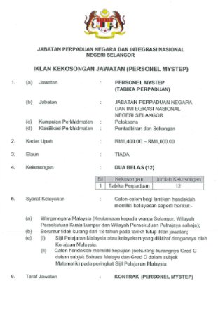 Iklan Jawatan Kosong Jabatan Perpaduan Negara Dan Integrasi Nasional Negeri Selangor Kerja Kosong Kerajaan Swasta